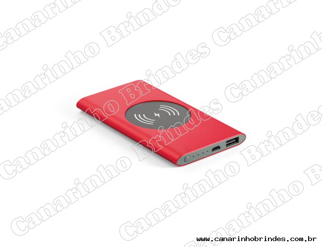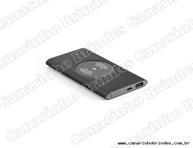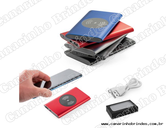 Bateria portátil e carregador wireless em alumínio com bateria de polímero de lítio.