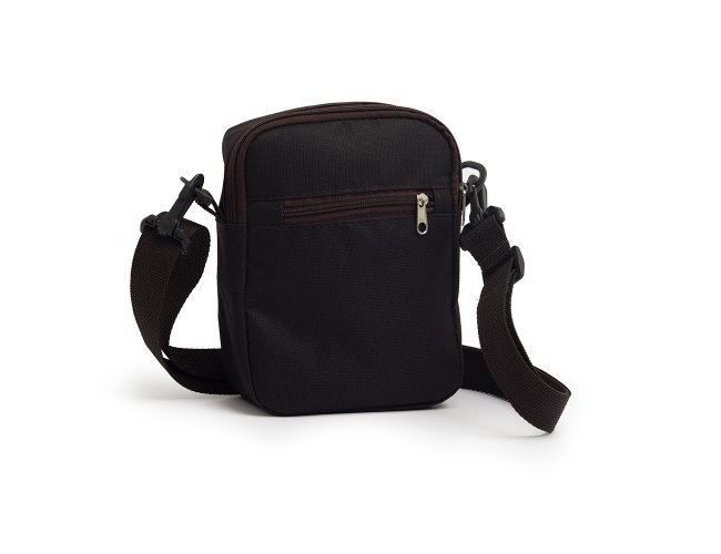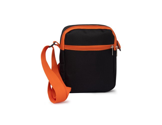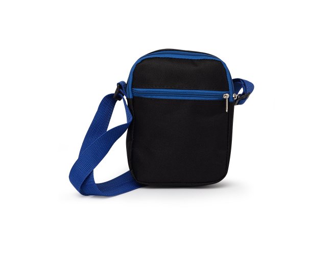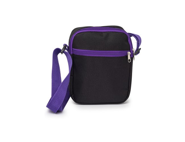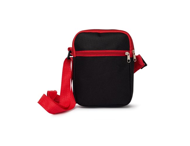 Bolsa de ombro em nylon com dois compartimentos, sendo o principal com bolso interno telado. Possui alça com opção de regulagem.