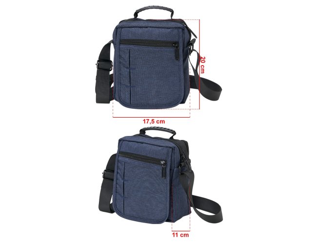 Descrição: Bolsa de ombro em nylon com quatro compartimentos.