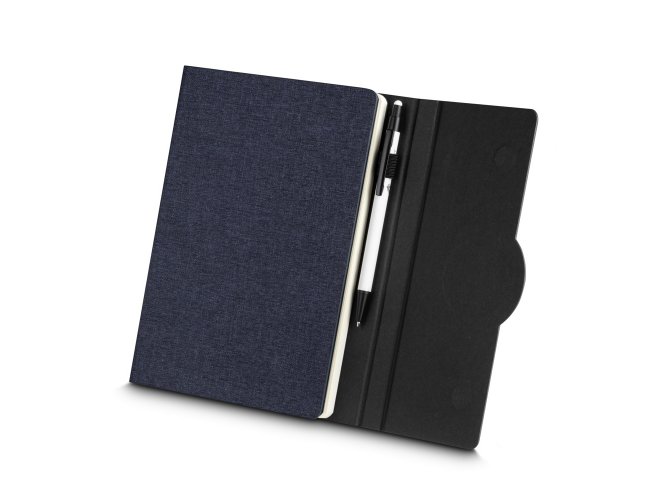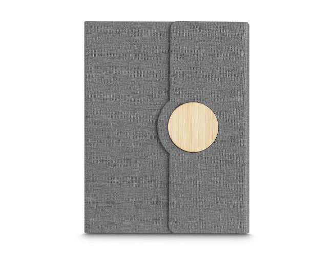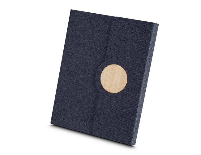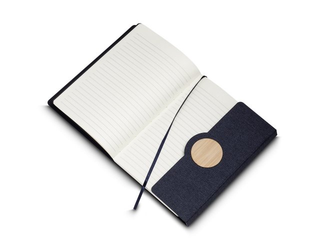 Nosso caderno de anotações é o brinde ideal para quem busca uma opção corporativa sustentável. Com capa em tecido rPET com detalhe em bambu e fechamento imantado, ele alia praticidade e consciência ambiental. Seu miolo conta com 80 folhas pautadas, e a parte interna possui um suporte para caneta, além de um marcador de página em cetim. Um brinde promocional perfeito para deixar uma impressão duradoura, oferecendo funcionalidade para as anotações.