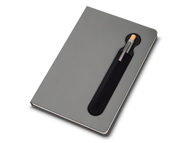 Caderno de anotações com suporte para caneta, capa dura em PU,
