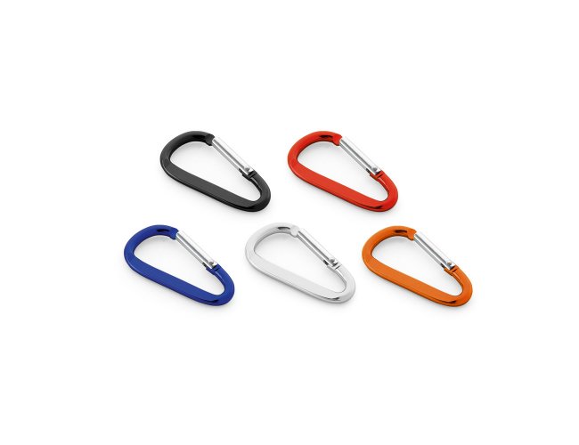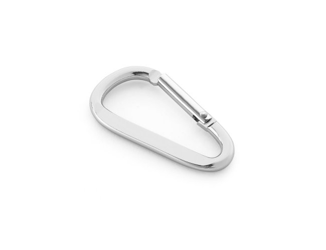 Mosquetão em alumínio com área plana para gravação. 24 x 48 x 4 mm