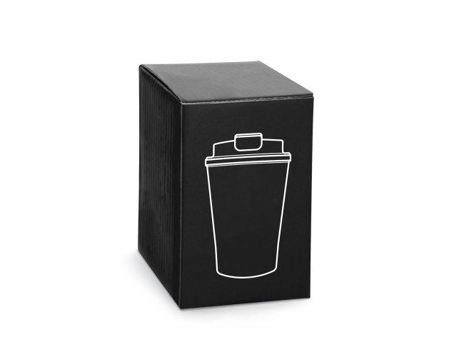 Copo de viagem em aço inox e PP com parede dupla e isolamento a vácuo (térmico).