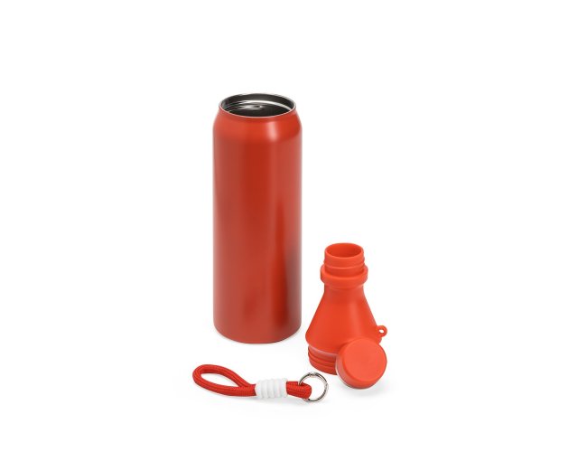 Garrafa térmica em inox com capacidade para até 500ml. Possui estrutura de parede dupla, ideal para conservar a temperatura de líquidos por mais tempo. Conta com tampa rosqueável e compartimento removível em plástico, permitindo o uso como copo. Acompanha alça em nylon com detalhes em plástico e mosquetão metálico.