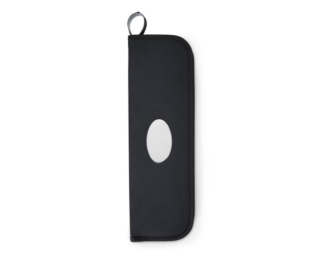 acompanha proteções plásticas(faca e garfo) e parte interna com elástico para guardar as peças.