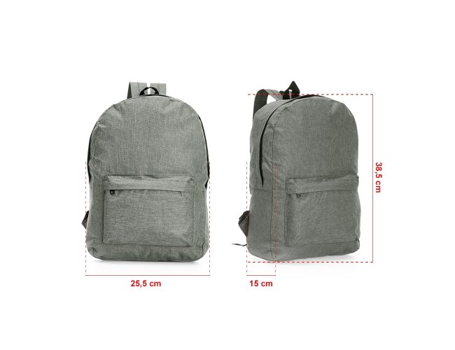 Mochila confeccionada em Nylon 14 Litros. Contém bolso frontal com zíper, alça de mão em nylon e alças para as costas ajustáveis.