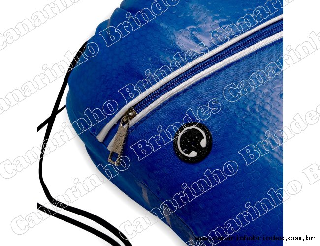 Mochila saco impermeável em fibra de poliéster. Contém bolso diagonal na parte frontal com entrada para fones de ouvido e alças de nylon.