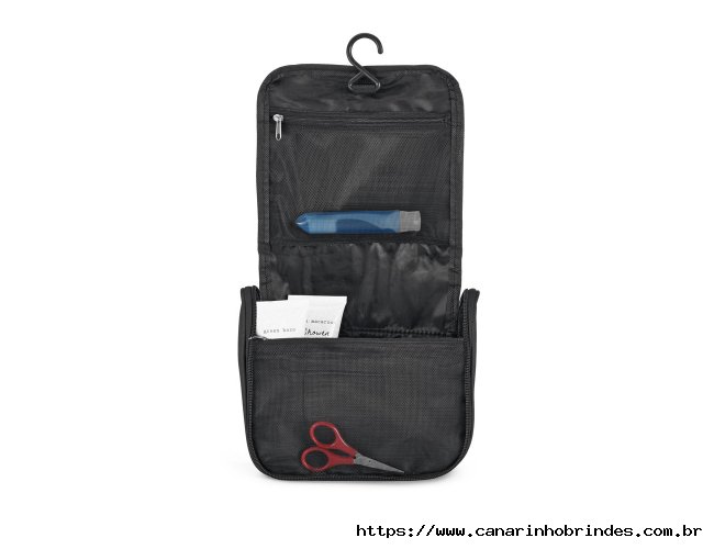 Bolsa de cosméticos em microfibra com vários bolsos interiores e gancho de pendurar. 200 x 160 x 85 mm