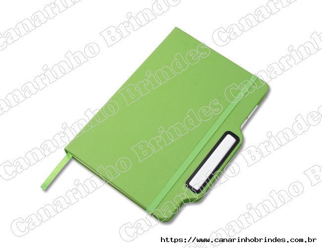Caderno de anotações com suporte para caneta, capa dura em PU, miolo 80 folhas não pautado na cor branca.