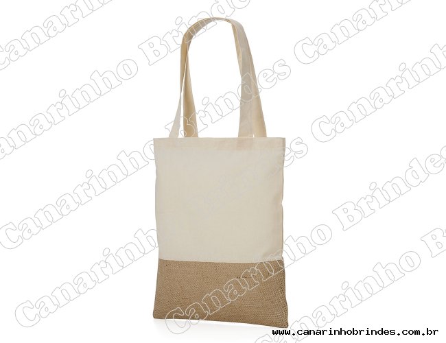 Descrição: Sacola ecológica em algodão e juta. Personalizado com a sua logomarca