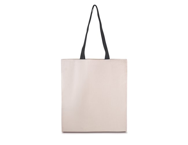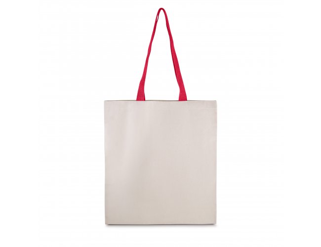 Sacola em Algodão Cru 140g/m², alça colorida em algodão trançado. Alça com altura de 30 cm, ideal para transporte.