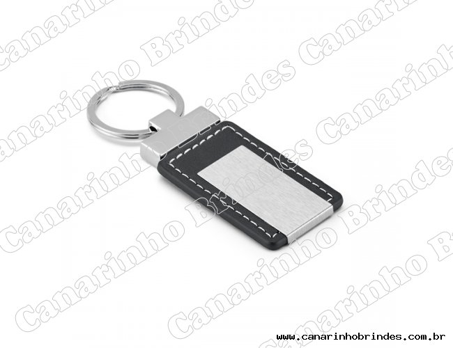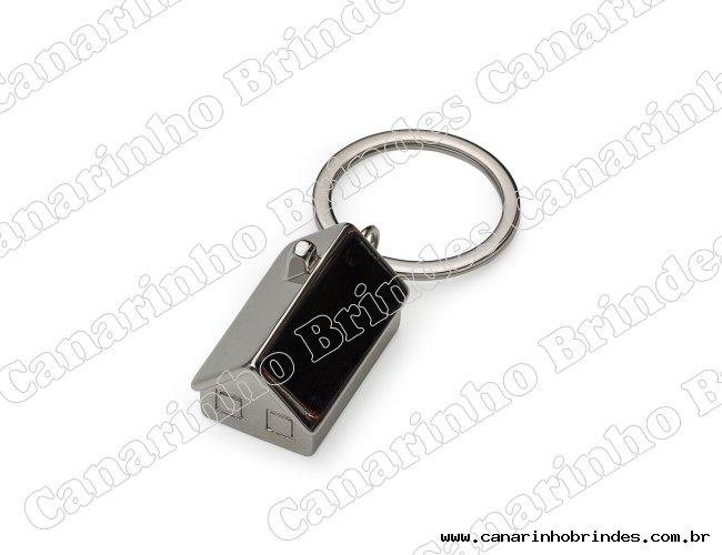 Chaveiro abridor de metal brilhante formato “pé de galinha”.